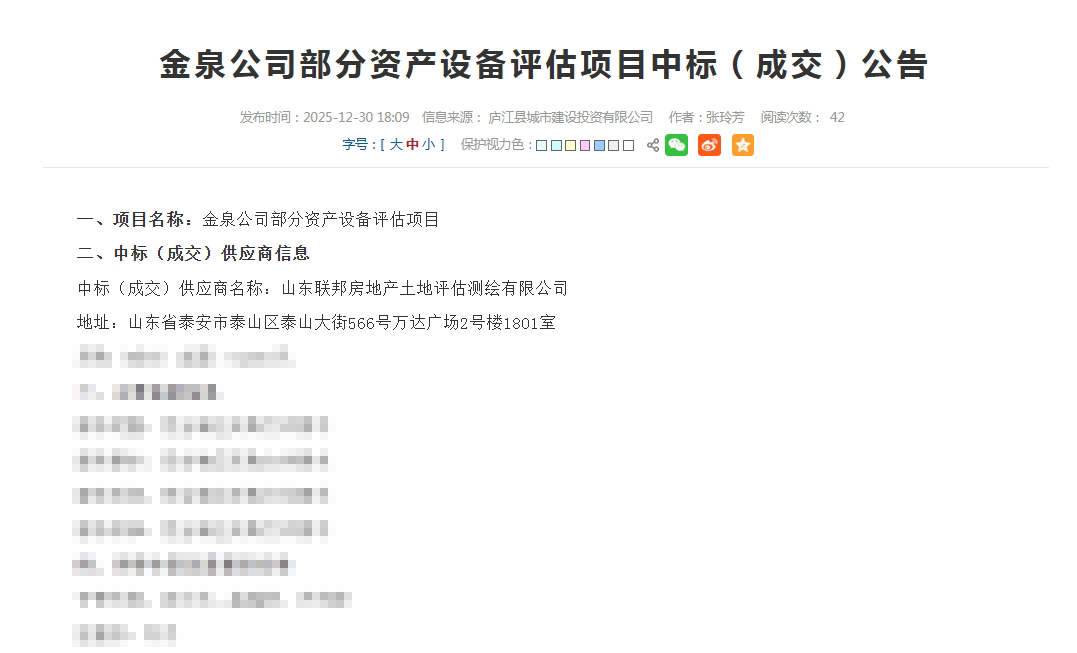杩戞棩锛屽北涓滆仈閭︽埧鍦颁骇鍦熷湴璇勪及娴嬬粯鏈夐檺鍏徃锛堜互涓嬬畝绉 鈥滃北涓滆仈閭﹁瘎浼扳濓級鍑熸墡瀹炵殑涓撲笟璧勮川銆佷赴瀵岀殑琛屼笟缁忛獙鍙婄瀛︾殑璇勪及鏂规锛屾垚鍔熶腑鏍囧畨寰界渷搴愭睙鍘块噾娉夋梾娓告姇璧勫彂灞曟湁闄愬叕鍙革紙浠ヤ笅绠绉 鈥滈噾娉夊叕鍙糕濓級閮ㄥ垎璧勪骇璁惧璇勪及椤圭洰銆傝椤圭洰鎴愪氦鍏憡浜 12 鏈 30 鏃ユ寮忓彂甯冿紝鏍囧織鐫鍙屾柟鍦ㄨ祫浜х簿缁嗗寲绠$悊棰嗗煙鐨勬繁搴﹀悎浣滄寮忓惎鍔ㄣ